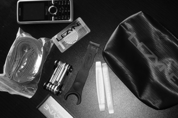 But recently I happened by chance upon an item that has made my life, and my riding experience all the easier and clutter-free. Lezyne products were having a season launch of their new, cool gear, and everyone attending received a free gift; in my case, I was handed the Caddy Sack, a simple PVC pouch. Inside was a metal patch kit with glueless patches, and a pair of mini tyre levers. I took it with a degree of dismissal, thinking it would just end up in the pile of superfluous bike crap scattered around my house. But I decided I’d see how much I could load it up, and was surprised to find that it holds a veritable shitload of gear. There’s room aplenty for a tube, levers, patch kit, multi tool, card wallet and phone. But if I want to, I can easily ft in another tube, a bar or two and a couple of gels. And it fits with ease into the middle pocket of all my jerseys, especially the sweet V jersey which is always the go-to garment of choice. This leaves the two outside pockets with more room than ever for whatever the ride requires from the aforementioned list-of-crap-one-may-carry.