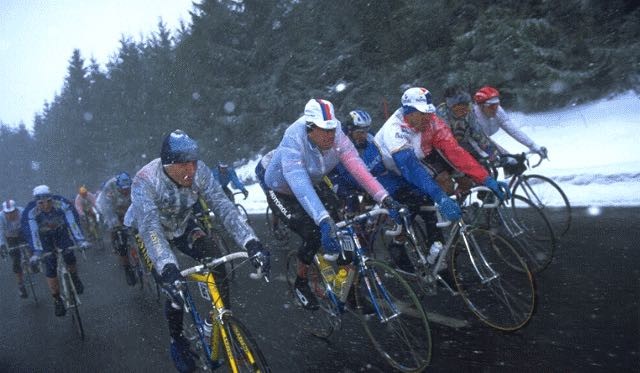 Sprezzatura for the Velominatus applies to every aspect of the sport; how we set up our bikes, our style and technique when riding, and how we select and wear our kit. Looking good in the summer isn’t very complicated; any fool can look good in short-sleeved kit adorned with tanned guns. Where things start getting tricky is when the cold and wet sets in and we need to add more kit to the equation. How does one control the chaos as leg warmers, long-sleeve jerseys, caps, gloves, rain jackets and overshoes are added to the mix?