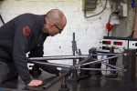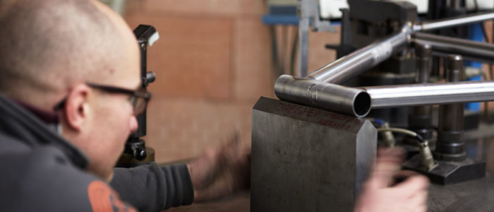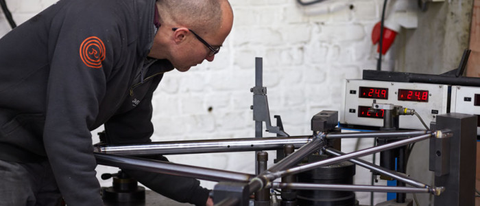 Where the vinyl record remains round, grooved and black, the steel bicycle’s tubes remain round, straight and flat. You can’t improve on what’s proven. What’s perfect. Only the touch of the hand of the artist can make each one unique, where things that are really just simple things (a record, a bicycle) can be themselves set apart by the signatures laid upon them by their creators, curating originality (Jagger, Jaegher). To say it’s pretty special to see your own bicycle being made, your name on the tubes as they come together to be joined forever by the heat of the torch and the deft touch of the electrode, would be a modest assessment. To finally ride it, might be impossible to describe.