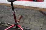 So the purpose of writing this was actually to comment on the Feedback Sports Workstand. I went for the Sprint Workstand model as I have never been too keen with clamping lightweight frames ever since my first lightweight Alu frame that came covered in stickers “Do Not Clamp Here” and the Feedback Sports model also has a neat arrangement of spacers on the axle QR clamp that will take variable OLD sizes suitable to my small collection and also can take Through Axle so is very versatile. It is not cheep but I highly recommend it. Sturdy construction with a wide base it is fully height adjustable and swings through 360 deg or can be clamped in a fixed position. Bikes can be clamped by the forks or rear axle depending on what you want to work on. Being Aluminium construction it is also great for cleaning bikes and hosing down as well as folding into a neat package to be easily portable.