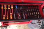 Having the tool cabinet is an absolute joy with everything having its own place and (so far) ensures that I put all tools back in their place after using them. No more scrabbling to find that left hand widget that I know is somewhere. In fact, now I’m looking for excuses to find something to fettle on one bike or another as it is so much easier than previously. The right tools for the job do make a huge difference. The slightly funny part of emptying my tool box was that I did find that I had duplicates of a few things that were hidden unseen way down at the bottom and I had bought the second not knowing there was a lurker down in the dark recesses of the toolkit.