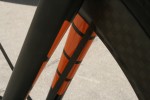 Matching the fork to the bike isn’t something that has always been done, in the carbon era at least, with a history of plain black or exposed weave units with whatever brand all over them, totally mismatching and taking away any aesthetic uniformity. Conversely, having every component painted exactly the same colour (and every wheel decal or logo the same) can have the effect of monotony, and depending on the base colour, be a bit dull. A painted inner fork leg gives the counterpoint needed in a subtle way, and depending from the angle the bicycle is viewed has that suit liner quality down pat. It says “I may Look Fantastic, totally relaxed and at ease with my Awesomeness, but take a look inside, just there… yeah, I’m all business, but when it’s party time, I’m on the soul train.”