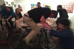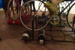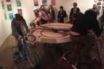 Once the madness on stage and the conga lines had subsided, the entertainment turned to the four-way stationary-bike races. With a raft of drunken, loud coaxing from the KT crew (well, Frank) each of us took our place on the rickety singlespeeds mounted on even more rickety trainers to see who could move the little coloured bikes in the middle of a giant wheel the furthest. Vo2 maxes were pushed to levels not seen all week on the cobbles, and legs that were only hours earlier crying for mercy were now being subjected to 180rpm three-minute intervals by brains that were operating at levels well below normal capacity. When Ms Motobecane saddled up and demanded some competition, those who were reluctant to punish themselves just minutes before were now fighting for the last too-small or too-big bike with renewed vigour. Hearts raced and brows became beaded with sweat, and that was before a pedal was turned in some vestige of enthusiasm, as much as could be summoned at 11pm in a drunken haze.