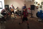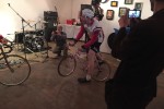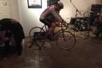 A particularly cordial mademoiselle decked out in a sweet Motobecane jersey told me that the surrounding area was “like 95% of Roubaix is”, which I took to mean not very glamourous. I also got the impression that every Cycling fan in town was assembled in this tiny enclave on the night, and that this kind of entertainment wasn’t typical of what you’d find on any other Thursday night in town. The band was unlike any other you’d find anywhere, ever. Les Chattes Patates (a ‘plow potato‘) were a cross between Monty Python, the Raleigh TI team of the 70s and Weird Al Yankovich. On acid. With instruments and tiny bicycles. There was definitely a sense of “what the fuck” among our crew, we couldn’t understand anything that was being said or sung, but we spoke the universal language of Cycling, guitars, punk rock riffs and Ramones-esque posturing. Every now and then I’d pick up a shouted “Loison Bobet”, “Le Blaireau” or “Pou Pou Poulidor” and sang along accordingly. All the while the band was churning out yet another rapidfire rhythm, a poor sod dubbed “Monsieur Sir Weegins” turned the pedals of a bike with a too-low seat on a home trainer for reasons still unknown.