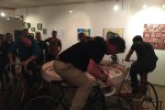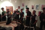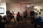 Our trustworthy partners Alex and William know how to keep a KT full of diverse and interesting side shows in the rare times we are not on our bikes. In 2013 Alex ferried us through the back blocks of Roubaix to a little space tucked away at the end of a corridor of an old factory of some sort for a pre-race gathering. The bar cum gallery was festooned with old team jerseys, bikes, memorabilia and a bevy of beautiful women sporting some of those same jerseys. We weren’t exactly sure what was going on, but we enjoyed the look into how the locals celebrated the biggest event of the year for the town. This year we found ourselves once again on our way to the same space, this time with the promise of a cycling-themed band to entertain us after a hard day on the cobbles. William was sceptical as to the entertainment value of the evening, but Alex assured us that we would most definitely be entertained. He was right, as always.