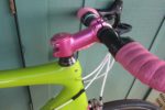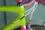 I want to like the green and pink combo. I really do. But I just can’t. I’m sure we can extend the rules regarding matching of bar tape and saddles to that choice of paint colors. Because it’s a slippery slope.